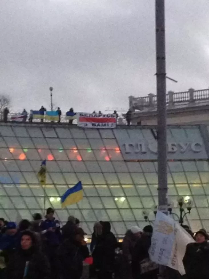 Спыненыя ў Мар'інай Горцы беларусы дабраліся да Майдана на перакладных і адкрылі там «беларускае прадстаўніцтва»