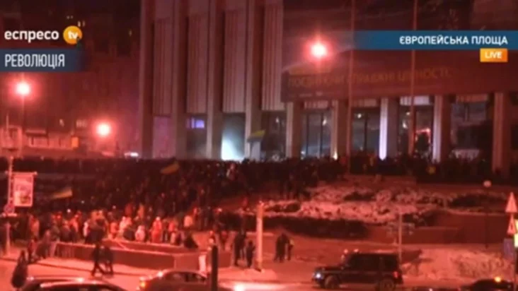 У ноч на 26 студзеня мітынгоўцы ў Кіеве акружылі, а затым і занялі «Украінскі дом» на Еўрапейскай плошчы, у якім напярэдадні днём забарыкадаваліся байцы «Беркута» і вайскоўцы ўнутраных войскаў.