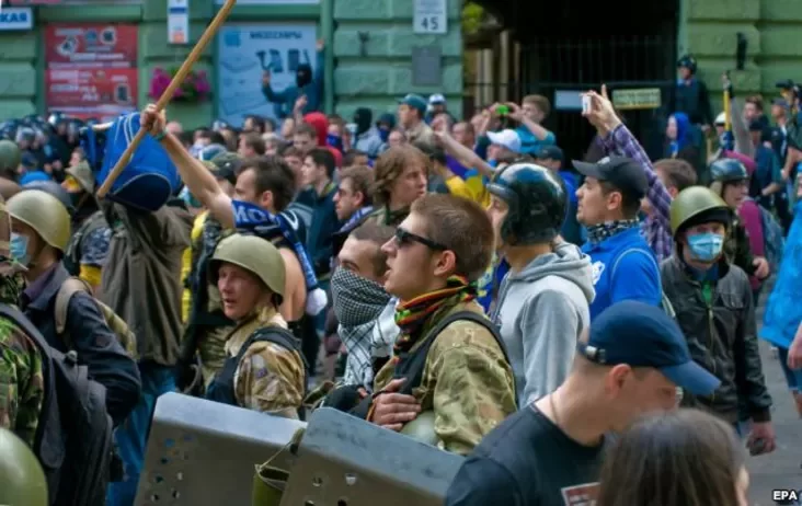Сёння прарасійскія штурмавікі спрабавалі разагнаць шэсце за адзіную Украіну. Яны ўжылі пісталеты і траўматычную зброю.