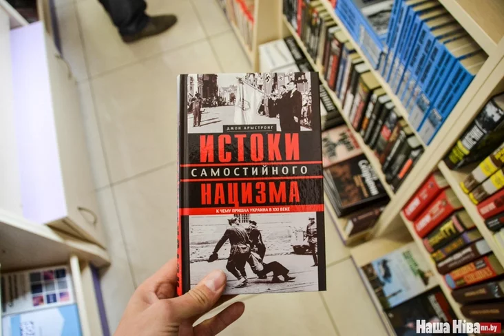 Надзвычай цікавая і кніга Джона Армстранга «Истоки самостийного нацизма. К чему пришла Украина в ХХІ веке», выдадзеная ў тым жа «Цэнтрпаліграфу». На вокладцы змешчаныя два фатаздымкі: украінскага трызубца на фоне гітлераўскіх свастыкаў уверсе і здымак двух жаўнераў, якія кудысьці валакуць бяззбройнага чалавека ўнізе.