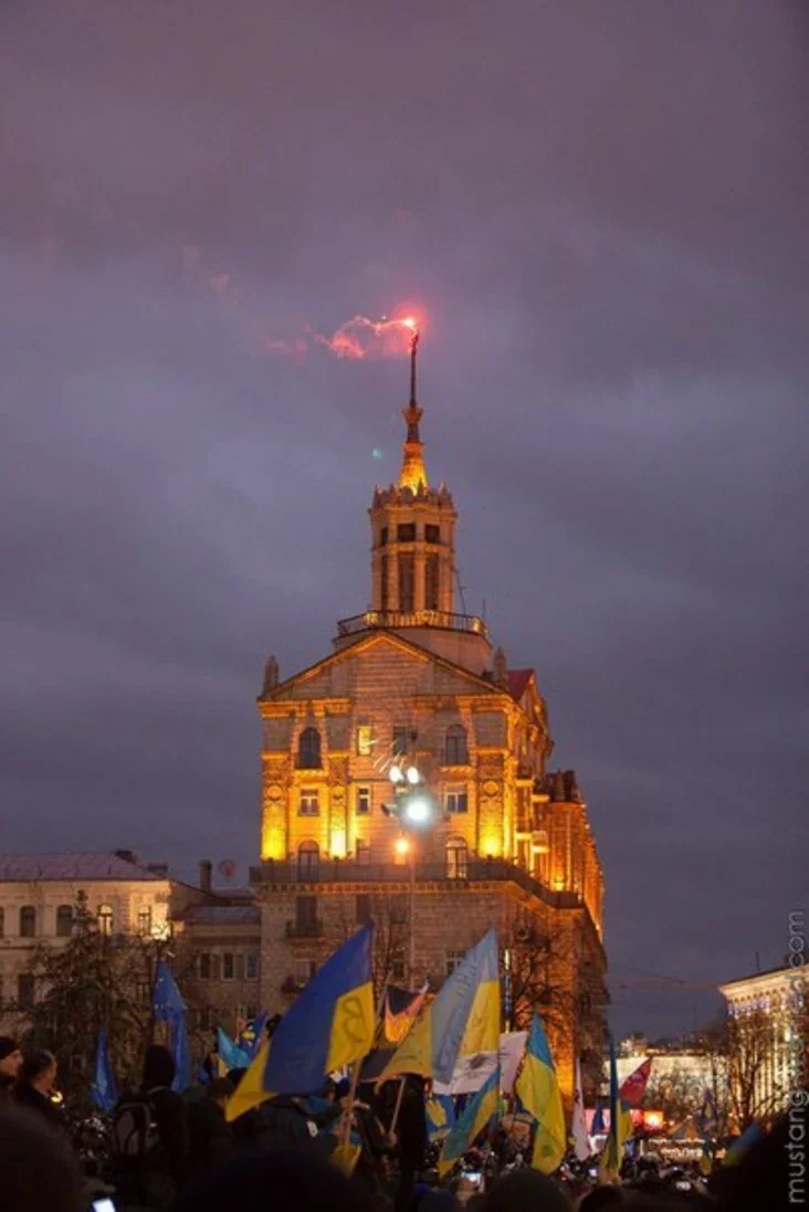 Я і ёсць той самы чалавек, які ў парыве шчырых патрыятычных пачуццяў забраўся на дах вышыннага дома на Кацельніцкай набярэжнай, і перафарбаваў зорку ў колеры нашага роднага ўкраінскага сцяга, а затым там жа падняў сцяг незалежнай Украіны, пра што ў мяне маюцца фота і відэадоказы.