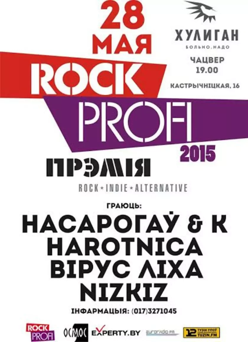 Уручэнне ўзнагарод і ўрачысты канцэрт прэміі Rock Profi 2015 пройдуць 28 мая ў бары «Хуліган».