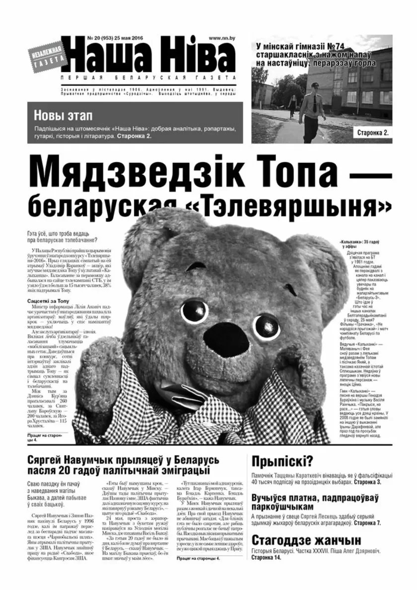 Падпісаны ў друк свежы нумар (№20, 25 мая 2016) штотыднёвіка «Наша Ніва». Падпісчыкам і ў кіёскі ён прыйдзе ўжо ў сераду.