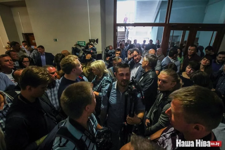 30 чалавек падтрымкі Япрынцава змаглі трапіць у залу. Некаторыя сваякі абураюцца, хай выганяюць прэсу і запускаюць сяброў.