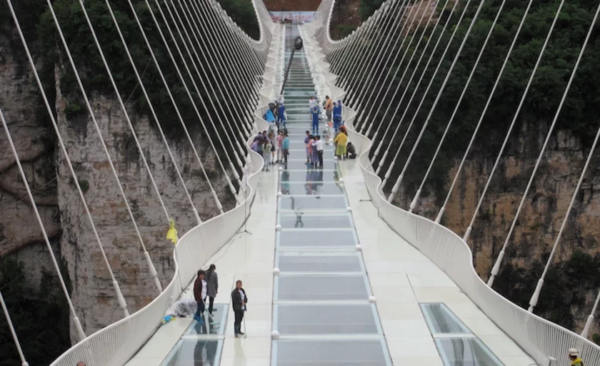 Самы высокі і самы доўгі шкляны мост адкрыўся ў кітайскім нацыянальным парку ў горадзе Чжанцзяцзе, паведамляе CCTV.