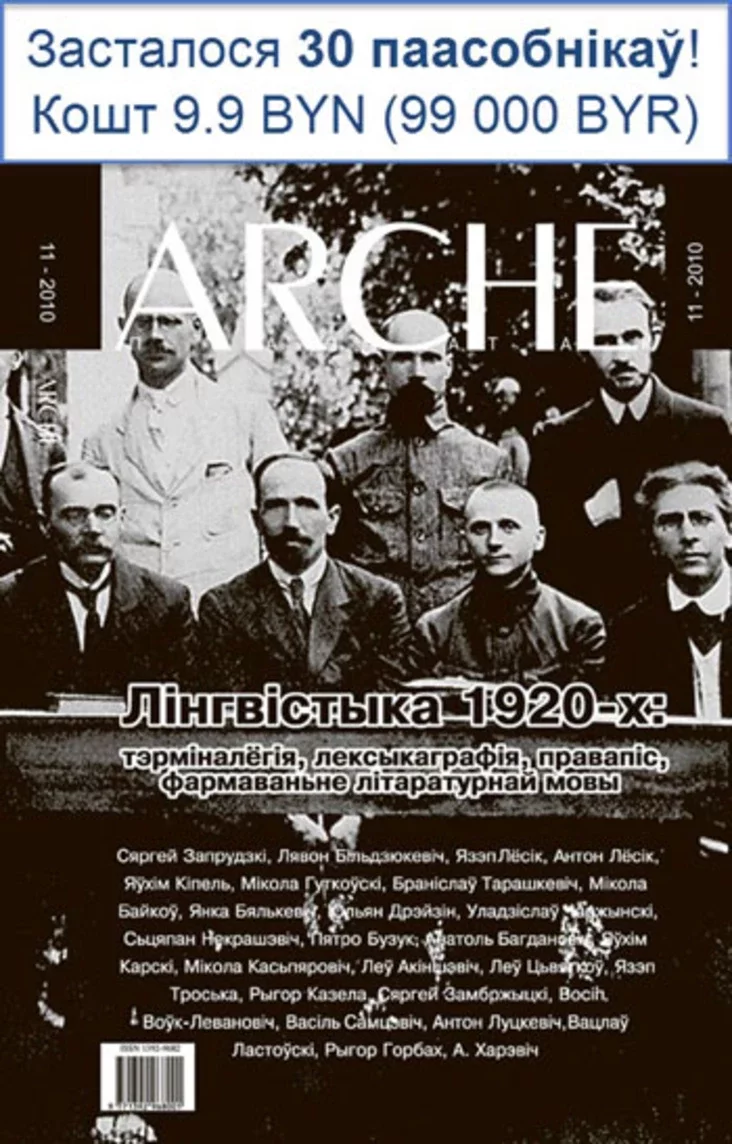 Рэдакцыя часопіса Arche інфармуе, што на складзе застаюцца апошнія 30 асобнікаў Arche № 11 - 2010 «Лінгвістыка 1920-х: тэрміналёгія, лексыкаграфія, правапіс, фармаваньне літаратурнай мовы».