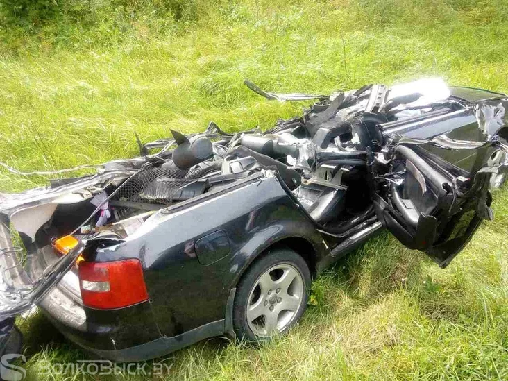 Толькі дзякуючы выпадку ніхто не пацярпеў, кіроўцу легкавушкі ўдалося прыгнуць галаву паміж сядзеннямі, калі прычэпам скатавоза ў Аudi сарвала дах і машына літаральна паляцела ў кювет, паведамляе сайт volkovysk.by.