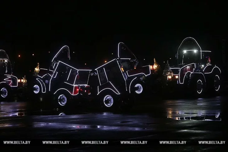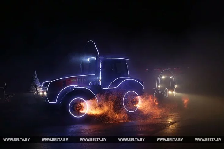 28 снежня Мінскі Трактарны Завод зладзіў у Мінску шоу з удзелам падсветленых трактароў і з феерверкамі, паведамляе Белта.