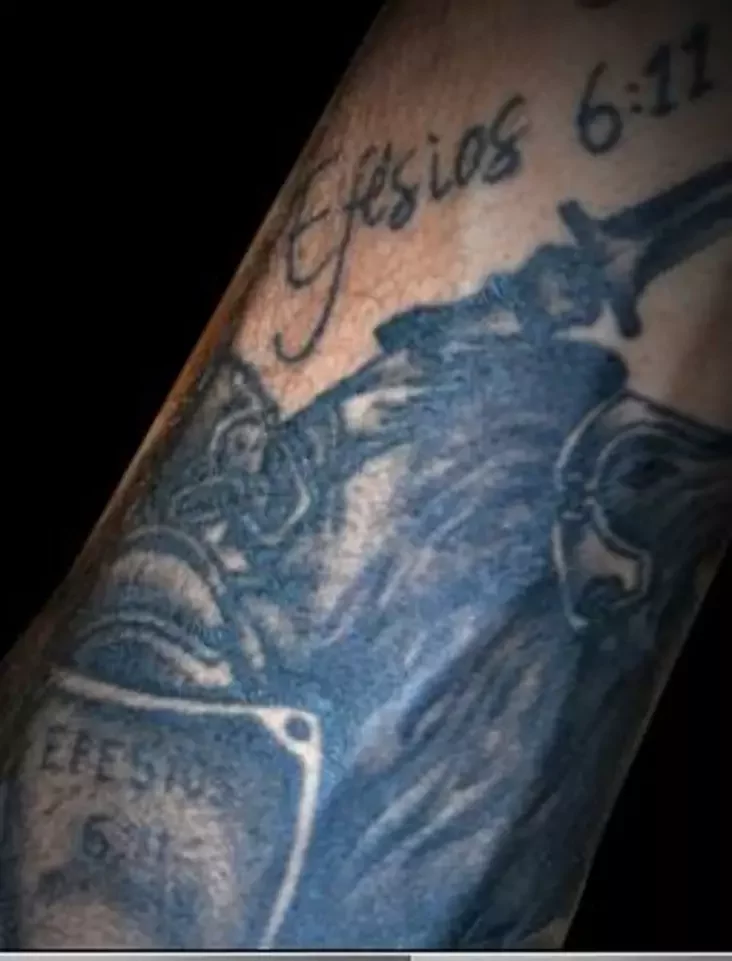 У сваіх татуіроўках футбаліст паказвае сябе вернікам. На перадплеччы ў яго намаляваныя рукі падчас малітвы і кароткі надпіс «Вера». Бразілец кажа, што без веры ён бы не змог стаць тым, кім ён ёсць сёння.