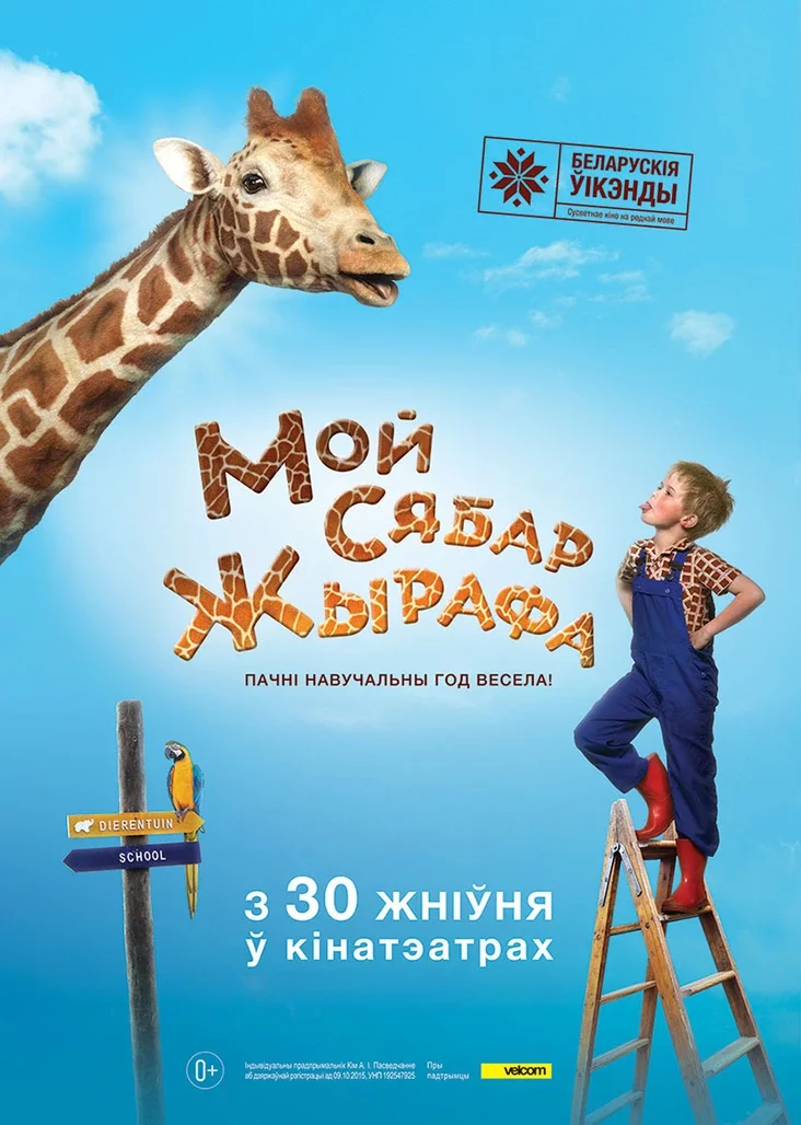 У рамках праекта «Беларускія ўікэнды», які рэалізуецца кампаніяй «Кінаконг» пры падтрымцы velcom, вядомыя прадстаўнікі тэатра і кіно Беларусі бяруць удзел у перакладзе і агучцы на беларускую мову замежных фільмаў, якія затым дэманструюцца ў шырокім пракаце. Сярод іх — «Хронікі Нарніі: леў, вядзьмарка і гардэроб», «Маленькі прынц», «Форэст Гамп», «Шторм», «Жонка аглядальніка заапарку», «Кніга Ілая», «Таямніца Келза», «Таемнае жыццё Уолтэра Міці», «Рыбка Поньё»… Цяпер калекцыю папоўніць і новы фільм з Нідэрландаў «Мой сябар жырафа».