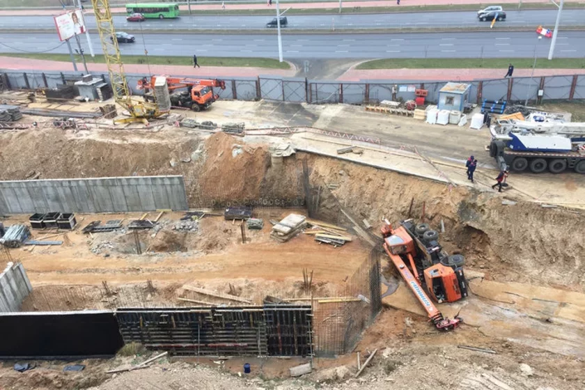 У нядзелю, 25 лістапада, на будоўлі каля дома на Дзяржынскага, 115 у катлаван упаў аўтакран.