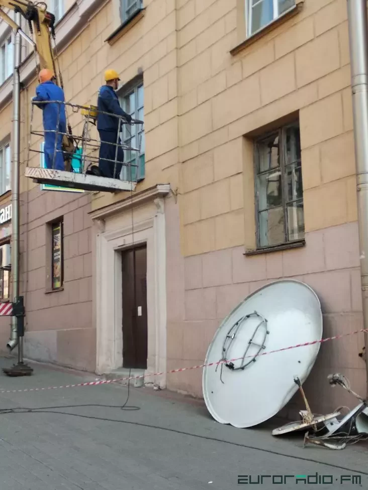 У цэнтры Мінска з жылых дамоў зразаюць спадарожнікавыя талеркі ФОТАФАКТ
