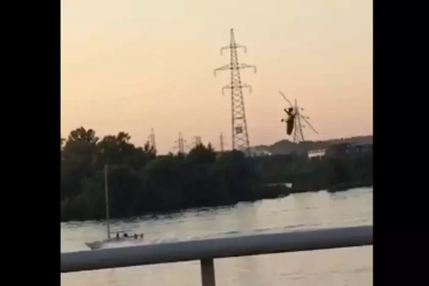 У Падмаскоўі верталёт зачапіў лініі электраперадачы і ўпаў у раку ВІДЭА