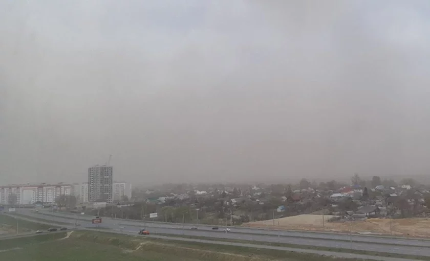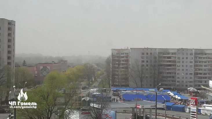 Сёння ў Гомелі з-за небывала моцнага ветру паднялася пясчаная бура, паведамляюць Моцныя навіны.