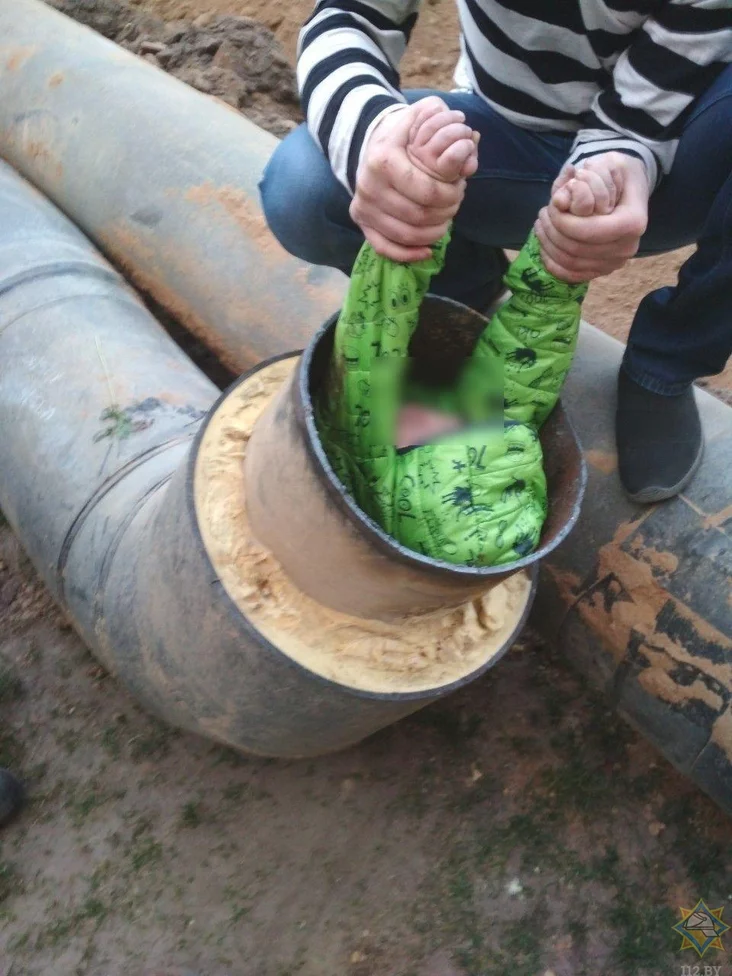 Хлопчык уцёк ад бацькоў на будоўлю, дзе ішла замена цепласетак труб вадаправода і залез у вадаправодную трубу. Выбрацца самастойна ён не змог. Выратавальнікі з выкарыстаннем падручных інструментаў дасталі хлопчыка з трубы.