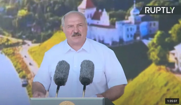 Гледачы вечаровай «Панарамы» на «Беларусь 1» маглі ўбачыць дзіўную карцінку. У эфіры з'явілася відэа з гродзенскага мітынгу за Аляксандра Лукашэнку, але з лагатыпам RUPTLY.