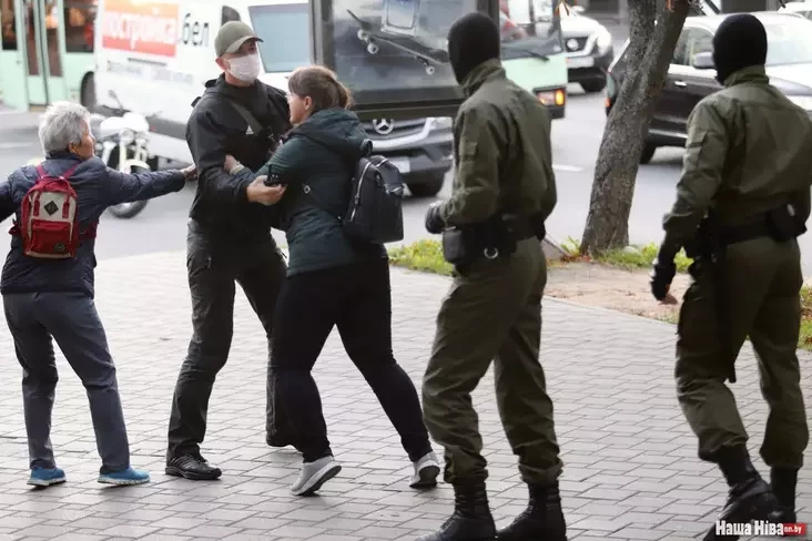 Пасля шматлікіх затрыманняў на Нямізе невялікая група жанчын рушыла ў бок праспекта Незалежнасці. У дзяўчыны, якая фіксавала тое, што адбываецца, на тэлефон, спачатку адабралі гаджэт, а пасля забралі і яе саму.