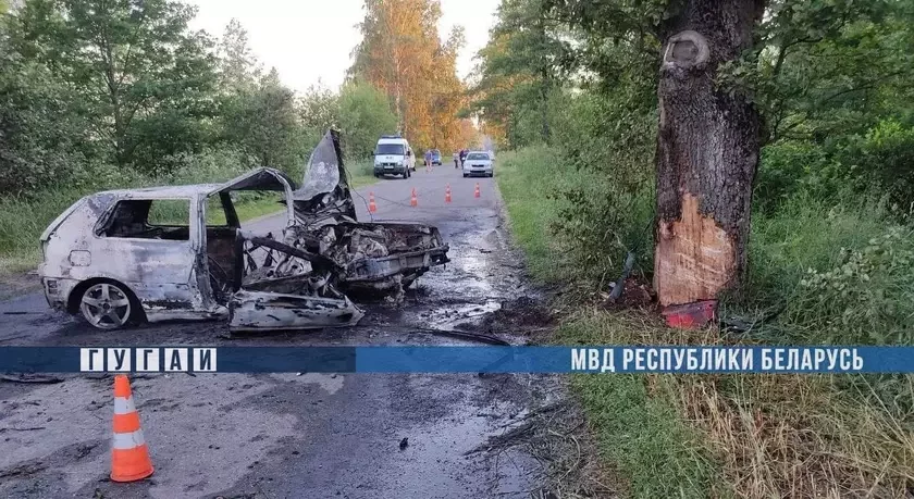 24-гадовы п'яны бяспраўнік на «Фольксвагене Гольф» урэзаўся ў дрэва. Ад удару аўтамабіль загарэўся, паведамляе прэс-служба МУС.
