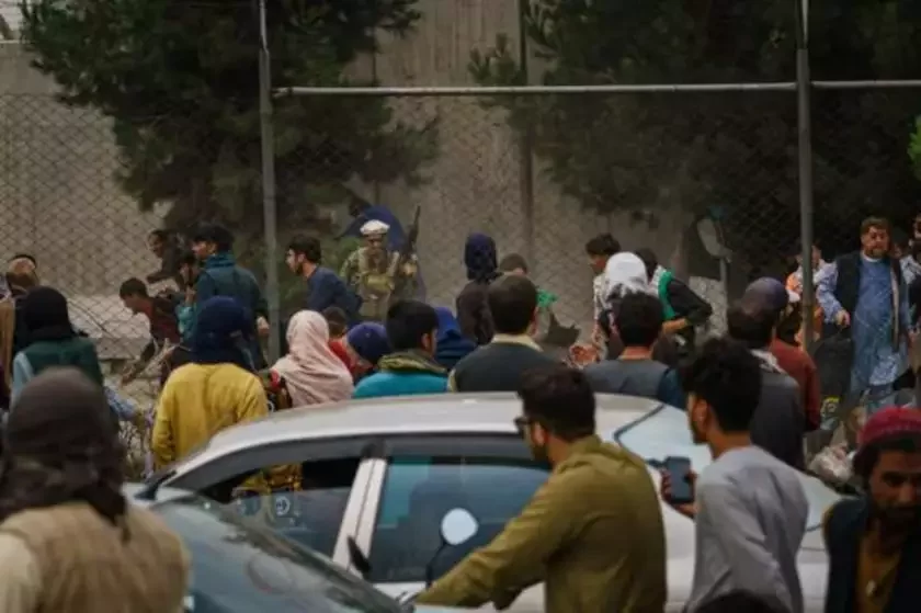 СМІ паведамлялі, што афганцаў, якія спрабуюць увайсці ў аэрапорт, спрабуюць спыніць талібы.
