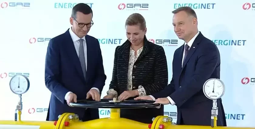 Baltic Pipe злучыў газаправодам Польшчу і Данію. Таму ў мерапрыемстве ўдзельнічала прэм'ер-міністр гэтай краіны Мэтэ Фрэдэрыксэн.