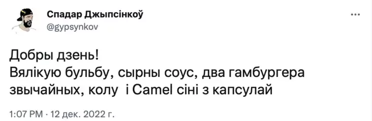 «Мне вялікую бульбу, колу і «Кэмэл» сіні з капсулай». Найлепшыя твіты тыдня