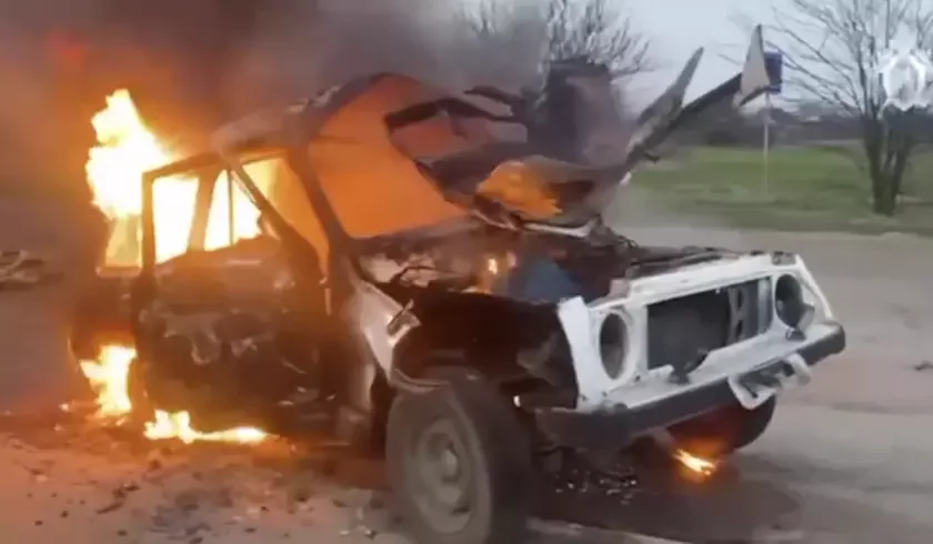 Падарваная машына камандзіра ўзвода ППС у Новай Кахоўцы. Скрыншот відэа