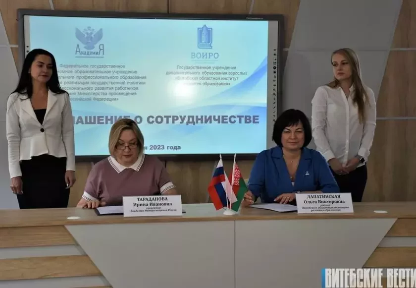 Віцебскі абласны інстытут развіцця адукацыі, які ладзіць для настаўнікаў гэтай вобласці курсы павышэння кваліфікацыі, заключыў дамову аб супрацоўніцтве з расійскай установай падобнага профілю «Акадэмія Мінасветы Расіі», піша «Віцебская вясна». І гэта не адзінкавы выпадак, а сістэмны падыход.