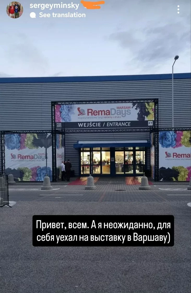 Цяпер Сяргей Мінскі падзяліўся ў сторыс у сваім інстаграме, што паехаў шукаць натхненне ў Польшчу — а канкрэтней, на выставу рэкламы і паліграфіі RemaDays, якая праходзіла ў Варшаве напрыканцы студзеня. Жартаваў, што знайшоў ідэі, якія будзе выкарыстоўваць «Першая прадзюсарская кампанія».