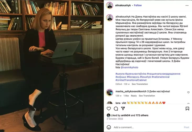 Пра тое, што ў 2022-м яе здымаў агент, Аліна Коўшык даведалася ад «Нашай Нівы».
