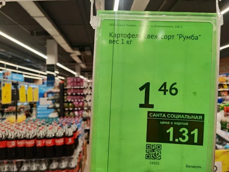 У супермаркеце «Санта» на праспекце Дзяржынскага, 106 маладой бульбы таксама не было. Была толькі леташняя за 2,14 рубля і за 1,46.
