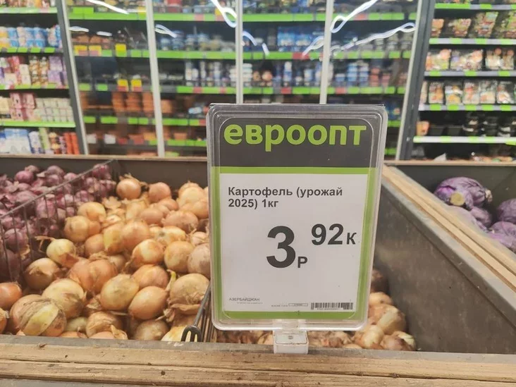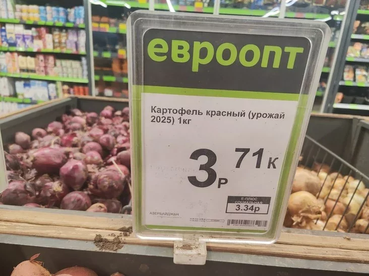 Што тычыцца маладой бульбы, то яна тут прадстаўленая двух відаў: звычайная (3,92 рубля) і чырвоная (3,71). Вырошчваюць бульбу ў Азербайджане.