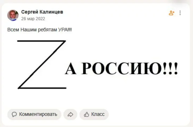 Аднак у «Аднакласніках» Калінцаў яшчэ з 2014 года займаў адкрыта прарасійскую пазіцыю (ставіў расійскі сцяг на аватарку, выказваў падтрымку расійскім дзеянням). А з пачатку паўнамаштабнага расійскага ўварвання стаў актыўным Z-нікам.