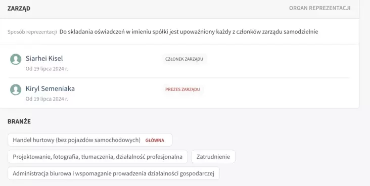 «Машыны возім з Германіі (у дзейнасці фірмы мужчыны пазначана: аптовы гандаль без аўтатранспартных сродкаў. — НН). Каму трэба, дапамагаем рабіць дазвол на жыхарства ці правы кіроўцы тыя ж. Мяняем беларускія на польскія. Нават калі ў Беларусі ў вас не было правоў, можам новыя зрабіць, але ўсё легальна — проста праца, камунікацыя з людзьмі».