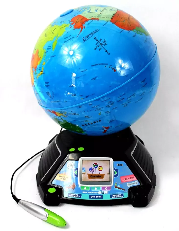 Інтэрактыўны глобус з аловачкам-стылусам мусіў дапамагчы дзецям ва ўзросце ад 5 да 10 гадоў даведвацца пра краіны, культуры, жывёл і мовы.