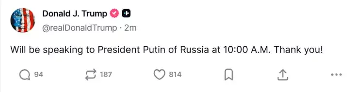 Факт размовы пацвердзіў і Дональд Трамп, дадаўшы, што адбудзецца яна ў 10 раніцы па Вашынгтону.