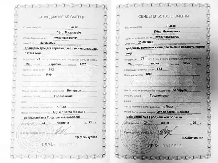 Што вядома? Актывіст Пётр Лысак расказаў «Соце» — расійскаму праекту, які фінансуецца алігархам-эмігрантам Леанідам Неўзліным — пра смерць свайго 71-гадовага бацькі.