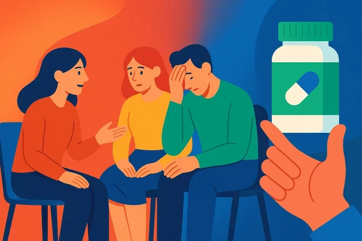 Звычайна медыкаментозная тэрапія прызначаецца разам з псіхатэрапіяй.