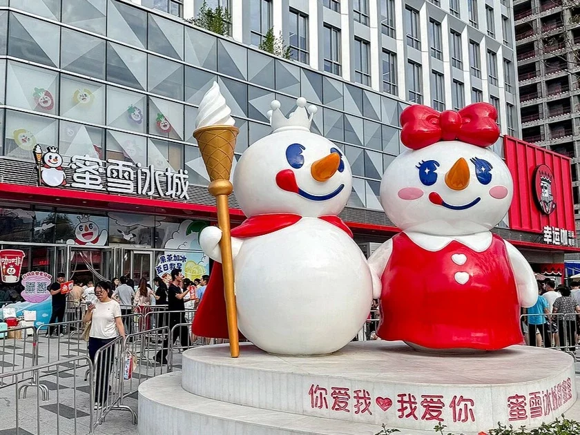 Mixue — гэта невялікія кавярні, дзе прадаюцца ахаладжальныя напоі і дэсерты. У меню можна знайсці мілкшэйкі, смузі, бабл-ці, а таксама марожанае з печывам Oreo. У сеткі ёсць уласны лагатып — усмешлівы снегавік з каронай, які трымае скіпетр у выглядзе вафельнага ражка з марожаным.
