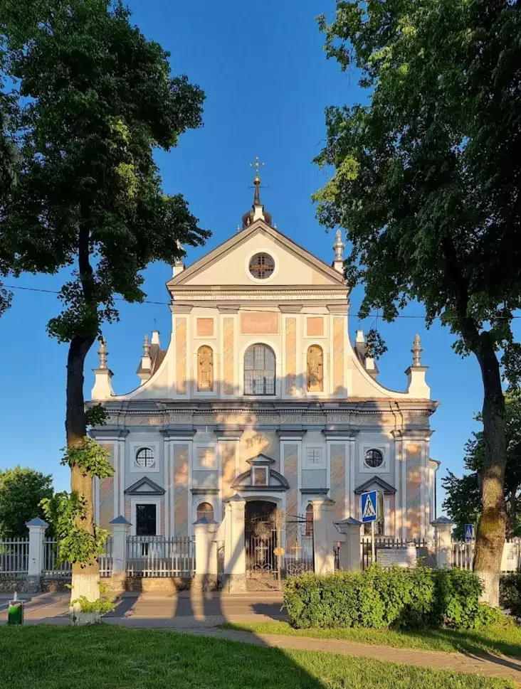 Раней на рагу вуліц Гейсіка і Адама Міцкевіча быў сквер з дрэвамі, якія прыгожа абрамлялі выдатную барочную архітэктуру касцёла, але цяпер усё перамянілася.
