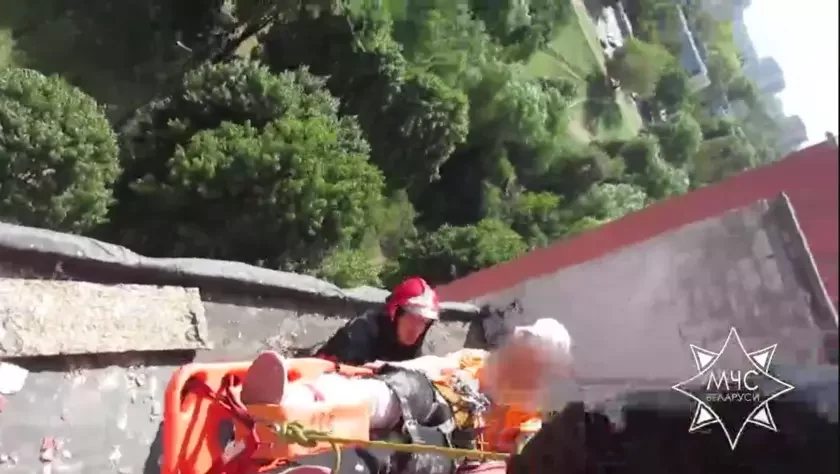 «З дапамогай альпінісцкага рыштунку і цвёрдых насілак ратавальнікі паднялі пацярпелага на дах дома, пасля чаго перадалі яго брыгадзе хуткай дапамогі», — паведамілі ў МНС.