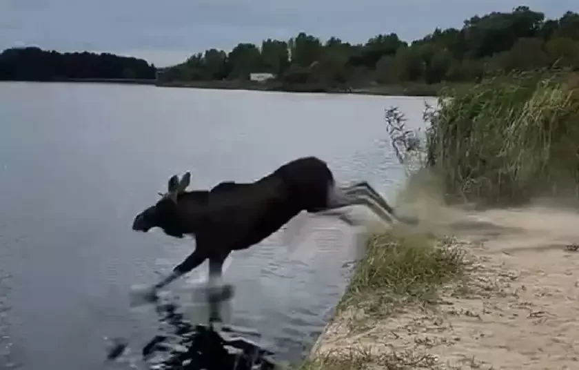 У Брэсце лось з разбегу кінуўся ў раку проста каля рыбака ВІДЭА