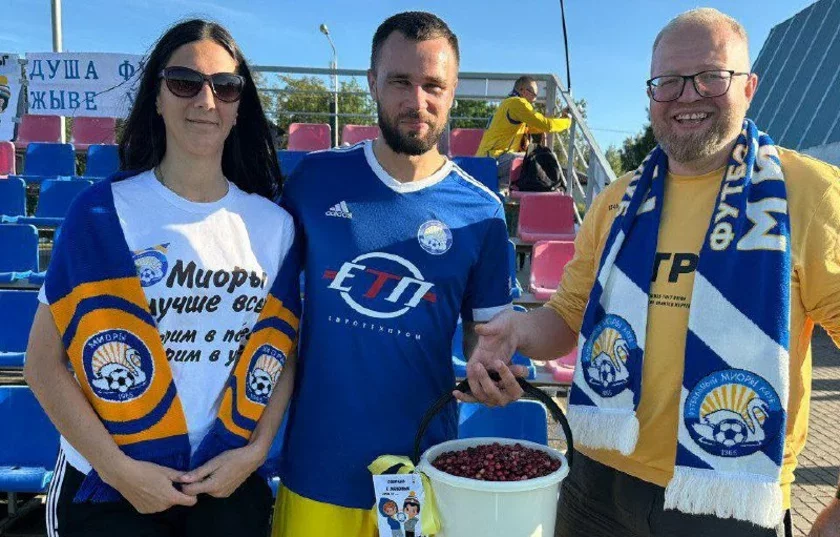 Найлепшы гулец матча 3‑га тура другой лігі футбольнага чэмпіянату (трэці дывізіён) у складзе «Мёраў» Дзмітрый Вашкель атрымаў у якасці прыза вядро журавін.