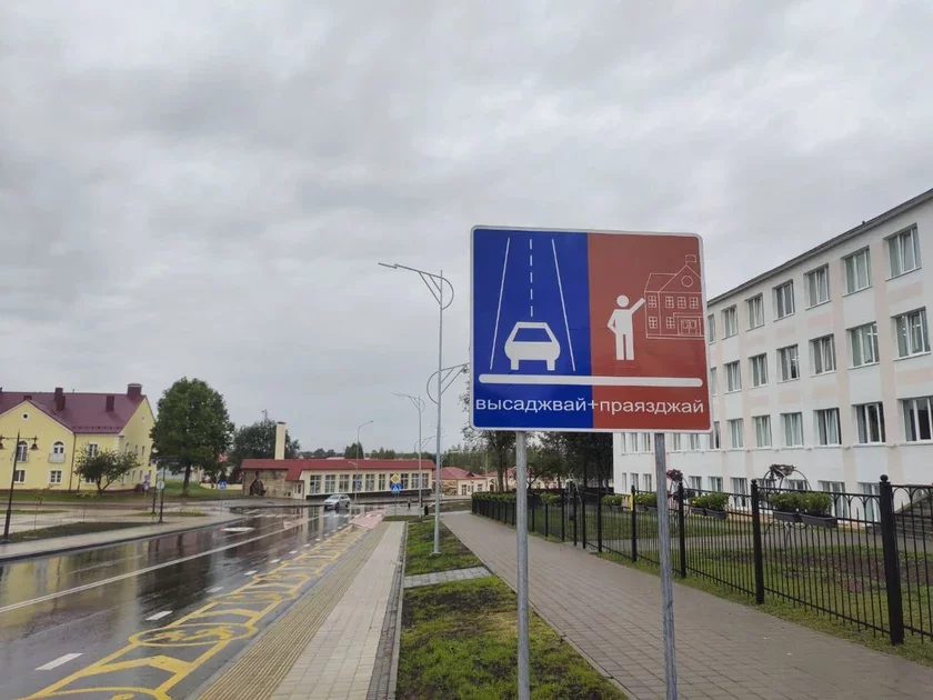 Традыцыйную белую «зебру» каля заслаўскай школы дапоўнілі яркімі элементамі: жоўтая зона пасадкі-высадкі дзяцей з акантоўкай з чырвонага халоднага пластыку. Такі кантрасны дызайн закліканы максімальна прыцягнуць увагу вадзіцеляў, прымусіўшы іх загадзя знізіць хуткасць.