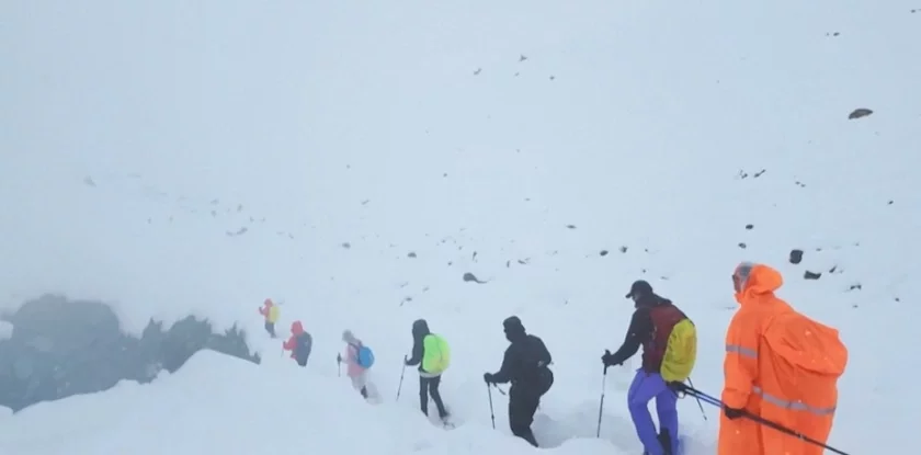 Адзін з гідаў апісаў снегапад як незвычайна моцны для гэтага часу года, у той час як ратавальнікі вядуць турыстаў праз мяцеліцы вакол заблакаваных сцежак і дарог.