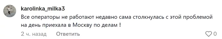 «Усе аператары не працуюць, нядаўна сама сутыкнулася з гэтай праблемай, на дзень прыехала ў Маскву па справах!»