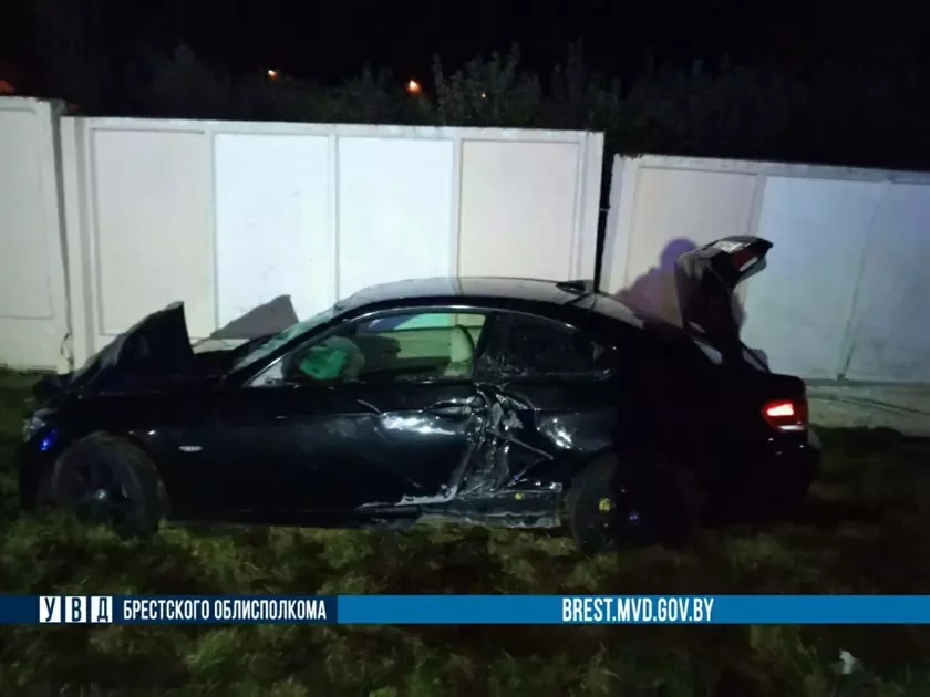 27‑гадовы жыхар Пінска, які не меў правоў на кіраванне аўто і быў у стане алкагольнага ап’янення, кіраваў аўтамабілем BMW. На павароце ён не справіўся з кіраваннем, выехаў у кювет і ўрэзаўся ў бетонную агароджу.