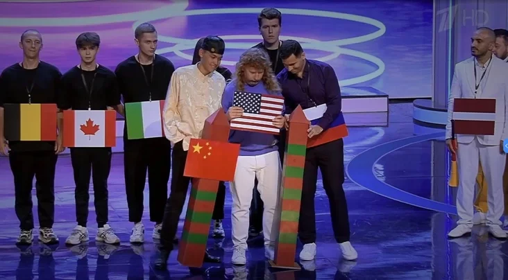 Затым на сцэне засталіся толькі Расія і ЗША. Капітан каманды ў вобразе Расіі падышоў да сумнага ўдзельніка каманды з перакуленым сцягам ЗША і выправіў памылку. А затым забраў дуду і пачаў на ёй іграць.