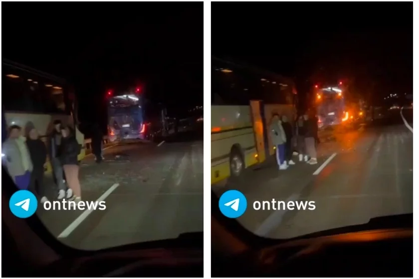 Згодна з відэа, абодва аўтобусы стаялі ў левым шэрагу.