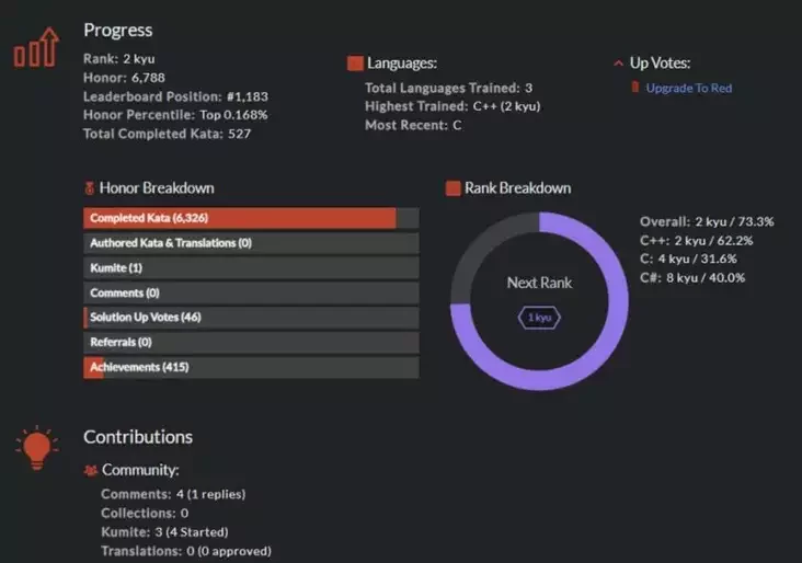 Узровень Басалая паказвае ягоны рэйтынг на платформе CodeWars: беларус уваходзіў у топ-0,168% карыстальнікаў па вырашэнні задач на C/C++ і займаў 1183 месца з мільёнаў карыстальнікаў платформы.