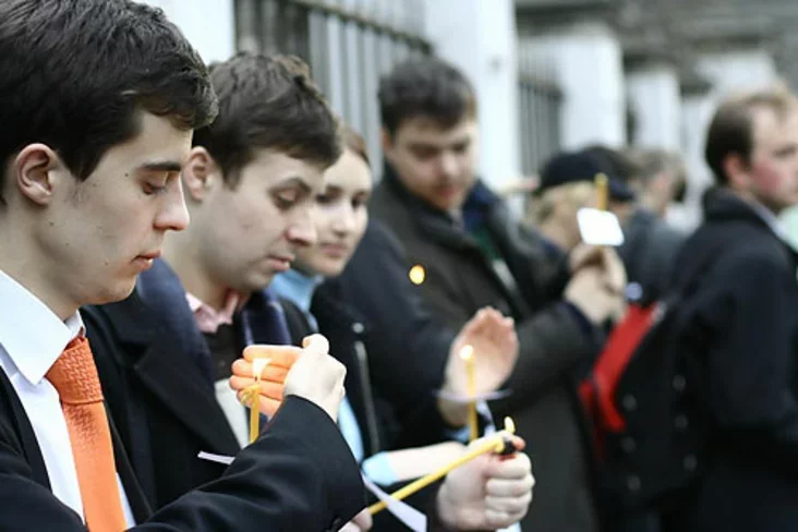Тут не было адмыслова адрэпэтаваных прамоваў, паказальных пералічэньняў чатырох тысяч імёнаў і абяцаньняў ніколі й нікога не забываць. Боль страты і словы, якіх у такія моманты заўжды не стае, — усё гэта засталося ў душы тых, хто запальваў сьвечкі, каб ушанаваць памяць пра загінулых ад катастрофы і каб у чарговы раз папрасіць выбачэньня. А 20:00 была аб’яўленая хвіліна маўчаньня, якая цягнулася больш за паўгадзіны. Але наўрад ці каму яна падалася задоўгай…